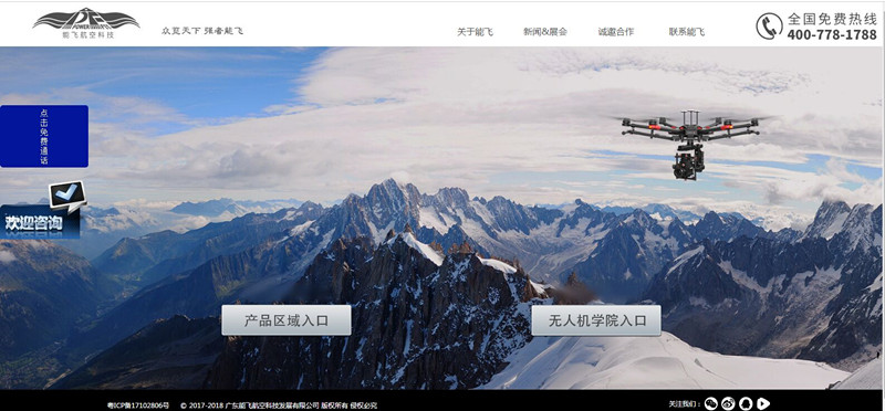 对于这个行业浏览的用户通常的两种,一种是需要使用无人机的用户,一种是需要学习这个技能的用户,所以这个网站设计的首页设置了两个端口,让用户在浏览网站的第一时间就能够找到自己需要的内容了。